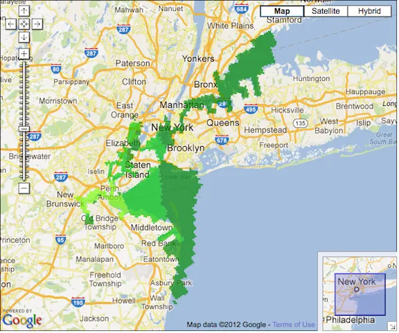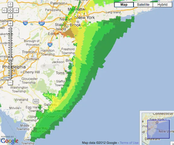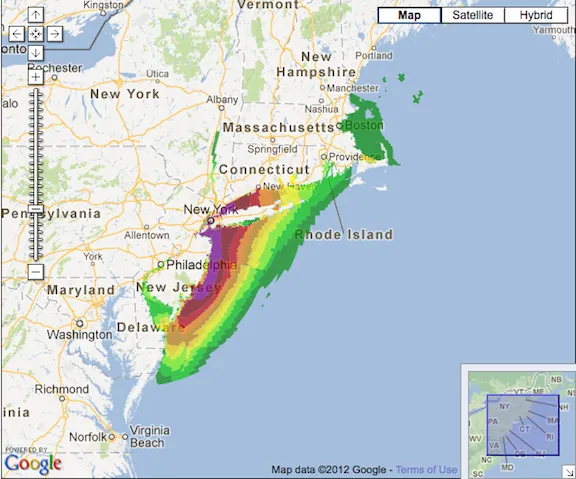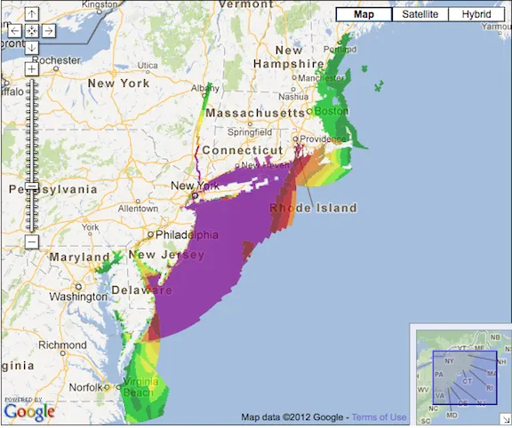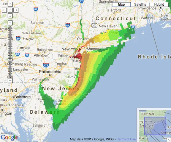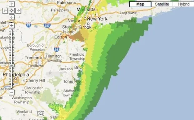 那么这将是什么样子?在这一点上,你可能应该忽略那个 “可能的锥形” 飓风轨迹(纽约市甚至不再 在 锥形内!)而是对这些地图感到恐慌,在你失去WiFi连接之前。