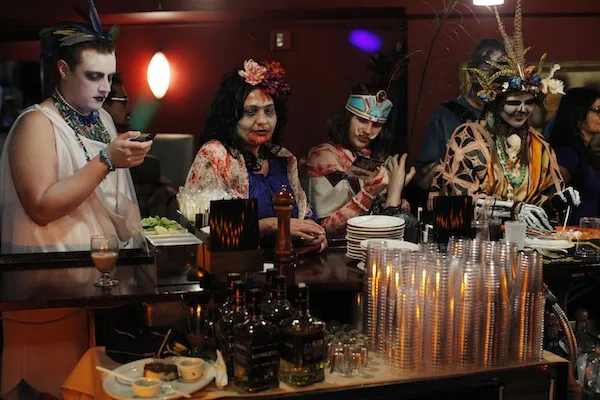 人们打扮成僵尸在纽约的一家酒吧下订单。 (爱德华多·穆尼奥斯 / 路透社)