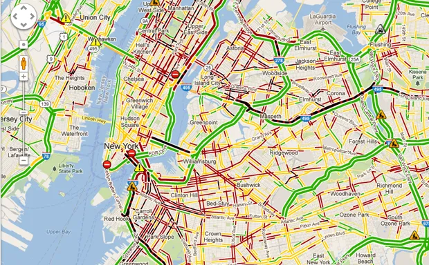 但由于这座城市在很大程度上依赖于易受洪水影响的地下地铁网络,这实际上意味着当其交通网络瘫痪时,纽约也会随之停滞。字面上说,这就是周三早上发生的事情。上面的谷歌地图显示了昨天早上纽约的噩梦般的地面交通堵塞,因为城市试图在没有地铁的情况下恢复工作。这只是一个快照,由亚伦·纳帕斯特克在推特上发布,显示布鲁克林大西洋大道上像停车场一样的停滞: