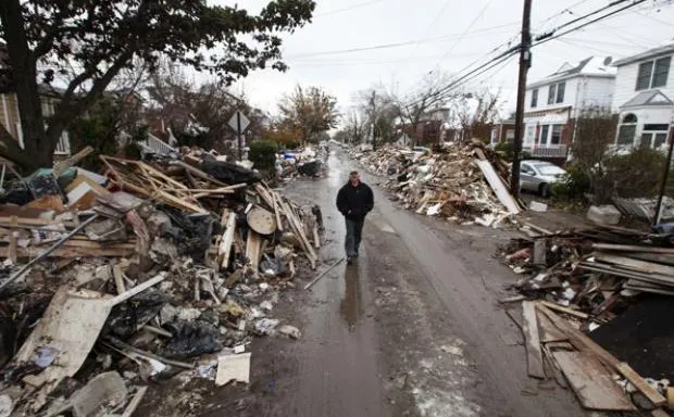 顶部图片:一名男子走过在纽约贝尔港区因桑迪飓风而受损的房屋外的废墟,时间是11月8日。(卢卡斯·杰克逊/路透社)