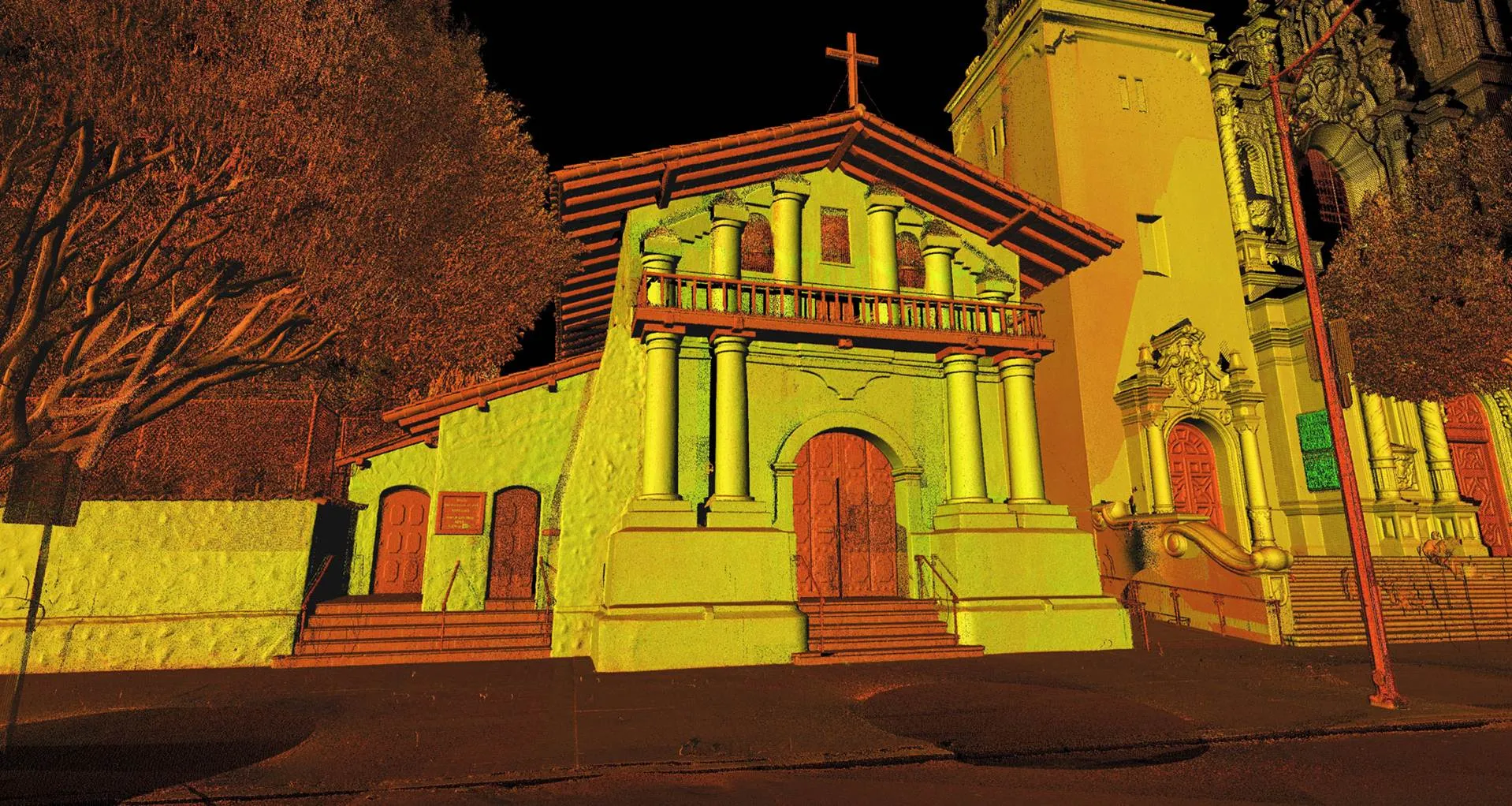 如果地震摧毁了壁画,就没有足够的图像可以再现它。李在使命多洛雷斯到达时充满热情,准备开始为期两天的“现场捕捉阶段”,时间是在去年夏末。使用地面扫描仪,莱卡C10和法罗Focus3D,她和来自CyArk的同事们从外部开始,特别关注墓地,该墓地埋葬着超过5000具遗骸,包括加利福尼亚州阿尔塔的第一位本土出生的州长路易斯·安东尼奥·阿尔格维洛,以及被臭名昭著的旧金山警戒委员会绞死的查尔斯·科拉和詹姆斯·凯西。