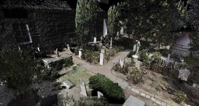 如果地震摧毁了壁画,就没有足够的图像可以再现它。李在使命多洛雷斯到达时充满热情,准备开始为期两天的“现场捕捉阶段”,时间是在去年夏末。使用地面扫描仪,莱卡C10和法罗Focus3D,她和来自CyArk的同事们从外部开始,特别关注墓地,该墓地埋葬着超过5000具遗骸,包括加利福尼亚州阿尔塔的第一位本土出生的州长路易斯·安东尼奥·阿尔格维洛,以及被臭名昭著的旧金山警戒委员会绞死的查尔斯·科拉和詹姆斯·凯西。