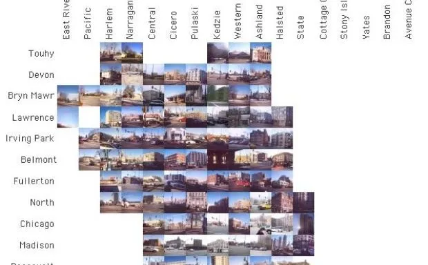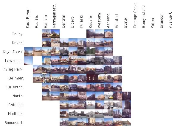 Freeman 的第一个项目,名为 “芝加哥逐里而行,” 创建了一个基于 212 张战略“里程”交叉口照片的非常规城市地图。它的灵感来自于芝加哥的 独特网格系统,在这个系统中,每八个街区测量一英里,城市的相应地址系统大部分以 800 为增量。如果你从麦迪逊街和州街的零点出发,向西走一英里,例如,你将到达 800 W 麦迪逊街的 Halsted 街角。