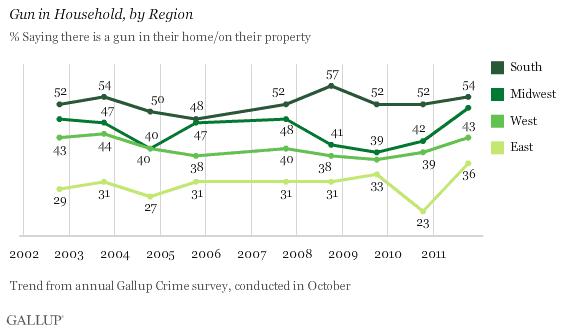 盖洛普在过去十年中发现了更稳定的拥有趋势,尽管拥有率在地理上差异显著: