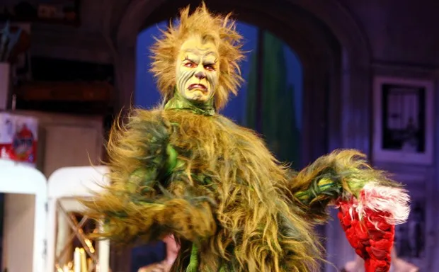 顶部图片:演员帕特里克·佩奇在2007年11月30日纽约的“百老汇回归”活动中与百老汇制作的演员们一起表演格林奇。(布伦丹·麦克德米德/路透社)