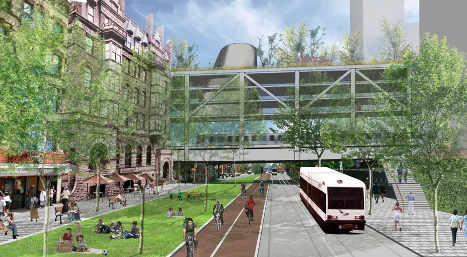 顶部图片:重新配置的125街和公园大道火车高架桥。展示土壤通道流动在空中权利开发下方,屋顶上有线性公园——这是曼哈顿新服务、社交和休闲空间的基准。密歇根大学的概念和效果图由密歇根大学的设计团队创建,包括Mrinali Bosikal、Evis Bushi、Lan Ge、Kelly Gregg、Yang-Yu Huang、Marisa Lopez、Rui Qian、Chen Qin、Jinwei Shi、Tongtong Wang、Yin Wang、Kelsey Williams和Enying Xing。研究助理:Sandra Pires;研究生助理:Yang-Yu Huang。