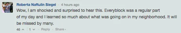 每个区块这个超本地社区新闻平台 每个区块 在五年前推出,基于人们想要——并且需要——一个与邻居讨论社区新闻的地方,尤其是在传统媒体难以提供这种机会的时候。或许最好的证据是,人们确实渴望以这种方式联系,当NBC在周四宣布 关闭整个网站时,533名评论者(截至本文撰写时)迅速转向该网站互相安慰,因其关闭而感到悲伤。
