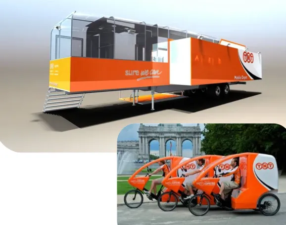 TNT正在为布鲁塞尔建模一种新的配送模式,称为“移动仓库”。在这个系统中,类似于BentoBox,一个装有大量包裹的拖车在非高峰时段被拖到城市的中心位置。包裹由最后一公里的司机使用小型电动或人力驱动的车辆进行配送。如果这些移动仓库能够在城市的战略位置投放,当前使用地面街道和高速公路前往位于城市外的配送中心的包裹卡车就可以被消除。