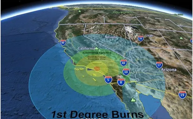 好莱坞长期以来对小行星撞击充满了痴迷——见证 世界末日、 深度撞击,一堆糟糕的 电视电影,等等。好莱坞高管们,你们的阴暗愿望实现了:一颗直径1.2英里(这算是“巨大”)的小行星正在撞击洛杉矶。如果你住在贝克斯菲尔德,你会知道灾难发生了,因为你的衣服会突然着火: