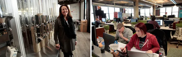 (左) 伊丽莎白·罗斯在底特律市中心的咖啡帝国“Roasting Plant”的第一家分店外站着,时间是1月25日;(右) 企业家布莱恩·多伊格和辛迪·拉罗(右),在底特律市中心的M@dison大楼内从事他们的网络业务,时间是1月25日。由Rebecca Cook/路透社报道虽然大市中心的富裕程度高于整个城市,但它在其他城市中心面前仍显得落后。大市中心居民的人均收入为20,216美元,明显高于整个城市的15,062美元,但低于全国的27,334美元以及费城和匹兹堡等其他城市中心。
