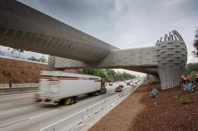 第六街桥将与洛杉矶其他几座最近建成的桥梁相连,这些桥梁放弃了“价值工程”的无情效率,以推动设计的边界。去年十二月,已经被称为“篮子桥”的584英尺长的混凝土桥终于完工,供金线山脚延伸线使用。该桥跨越210号高速公路,由以公共项目闻名的艺术家安德鲁·莱斯特构思。曲线篮子设计旨在向圣加布里埃尔谷的原住民致敬,那些曾经穿越这些山脚的美洲土著。