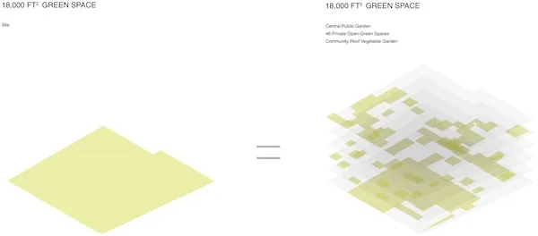 该建筑的计划在每一层和屋顶上层叠绿色空间,创造出总共18,000平方英尺的花园,或者相当于将整个地块变成一个公园。
