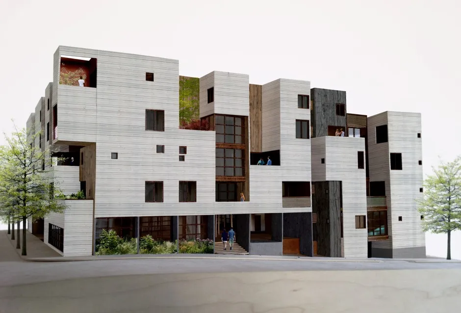 设计假设来自社区任何地方的骑自行车者和行人都能够通过建筑的开放走道和庭院。马里斯卡尔说,如果将足够多这样的建筑串联在一起,社区可以为步行或骑自行车的人创造一个次级网格。