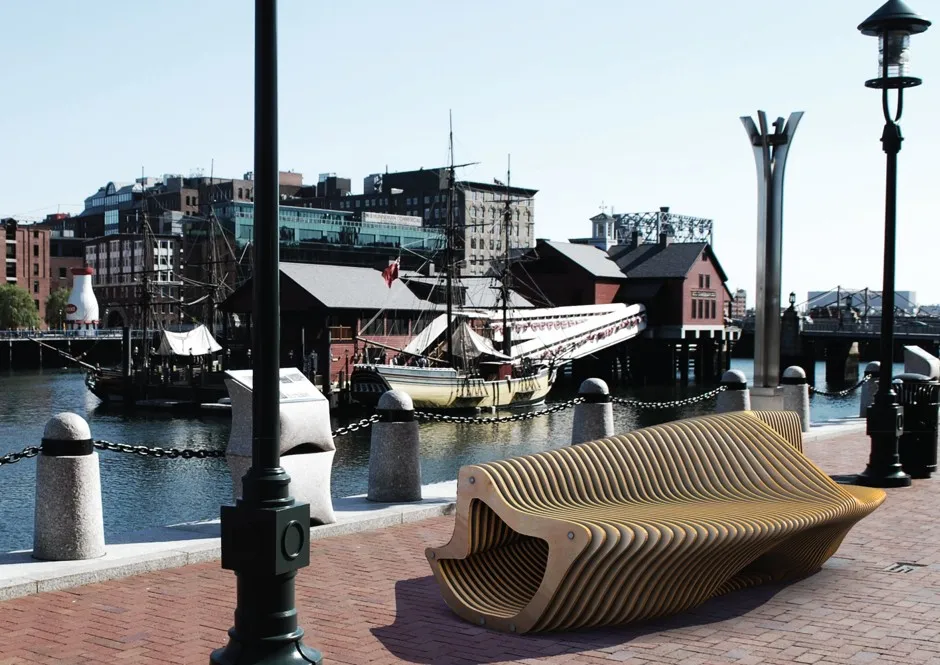 “我可以看到人们在水道周围走动,坐在所有20个长椅上体验它们,”设计博物馆波士顿的联合创始人兼主任萨姆·阿奎拉诺说。“这是一件常被忽视的非常简单的事情,它可能是什么?它不必是带有木条的铸铁[长椅]。”