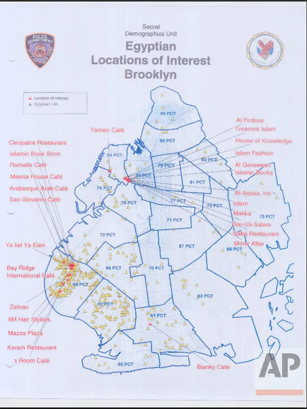 安德鲁·伯顿/路透社在2001年至2011年期间,纽约地区对穆斯林进行了一项大规模的监视行动,纽约警察局将线人和卧底特工派入咖啡馆、清真寺、餐馆、书店、服装店、美容院以及其他商业和机构,收集了一系列地图和指南,其详细程度令人震惊——是否有报纸可用?是否出售古董?食物是否符合清真标准?——接近于《孤独星球》对伊斯兰纽约的指南。