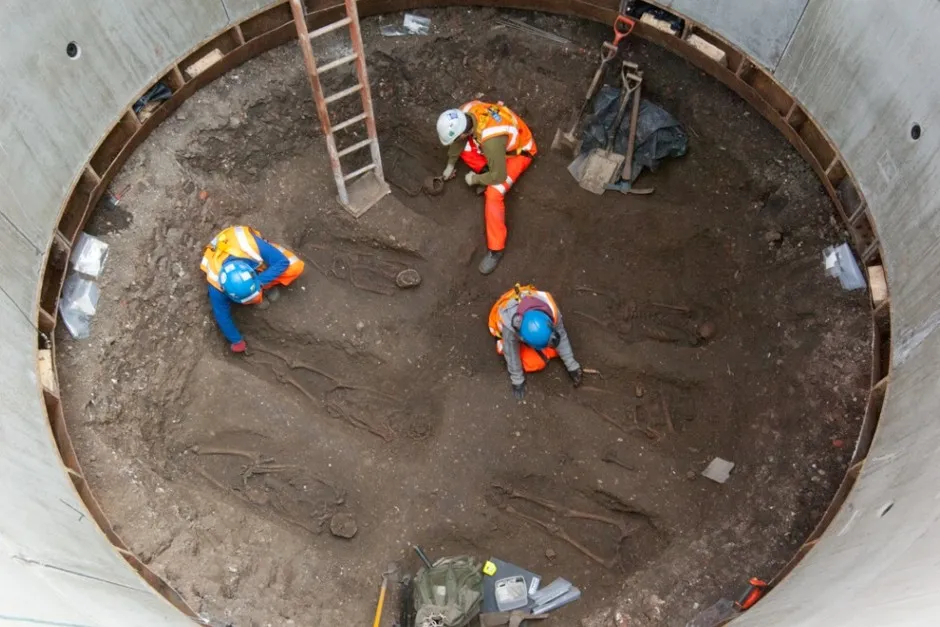 感谢Crossrail本周在伦敦有一些可怕的发现。在一条主要东西向铁路隧道的建设过程中,城市的 Crossrail 项目的工人刚刚挖掘出一个14世纪的瘟疫坑,里面埋有至少13具尸体。现在在伦敦的核心区域,这个集体墓穴在中世纪时位于城市墙的北侧,方便地处理那些 黑死病 在1300年代中期充斥伦敦时所产生的大量腐烂尸体。这并不是Crossrail工人首次发现骇人听闻的遗迹。2011年,他们发现了 300名不幸的“疯子”,即前贝德拉姆医院的囚犯,他们(可能是伪造的)狂言使他们成为18世纪伦敦最受欢迎的旅游景点之一。对于关注伦敦的人来说,这并不令人惊讶。在这里挖掘几乎不可能不碰到某具骷髅、地下河流或一段罗马墙。上个月,可能是“奢华”的罗马遗骸在伦敦桥车站下被发现,靠近两年前挖掘出的同一时代的浴室。一些其他发现使这些遗迹看起来相当现代。在英国秘密服务总部前,仍然可以看到一段 可追溯到公元前1500年的史前仪式码头的遗骸,在低潮时从泰晤士河中露出。这种地下遗产对历史爱好者来说非常迷人,但对建筑工人来说可能会感到毛骨悚然——在2007年,伦敦一座充满古墓的桥梁工地上的工人抱怨说 鬼魂在吹他们的灯泡并偷走他们的工具。这也使得在一个已经密布下水道和地铁隧道的城市中,地下建设变得极其复杂。例如,一个流行的城市神话是,西伦敦海德公园和骑士桥站之间的地铁线路急剧转弯,以避免过于密集的瘟疫尸体。因此,讽刺的是,这座城市目前正在经历一场有争议的地下建筑热潮。尤其是在西伦敦,富裕的房主发现,唯一合法扩建受保护的历史房屋的方法就是 向下建造,在富裕地区挖掘出华丽的邦德恶棍风格的地下墓穴。这保持了地面上的外观不变,但正如Crossrail的发现提醒我们,在一座建立在骨头上的城市中,当你向下挖掘时,所发现的并不总是美好的。顶部图片:Crossrail工人在伦敦本周挖掘出至少13具来自14世纪瘟疫坑的骷髅。图片感谢Crossrail。