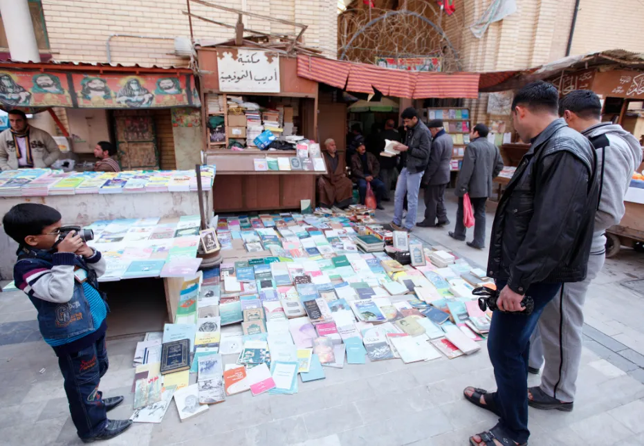 *一名男子在巴格达的穆塔纳比街上卖书。卡马尔·哈希姆(左侧照片中的摄影师)游历著名街道,用他的单反相机拍摄巴格达人。他是获得多个地方奖项的最年轻的伊拉克摄影师, 据伊拉克摄影协会称。(路透社)*街道上挤满了外国豪华车,甚至(偶尔)还有骑自行车的人。这里有一个新兴的 夜总会场景,骑着装饰着迪斯科球的船在底格里斯河上游玩是这座城市年轻人的时尚活动。