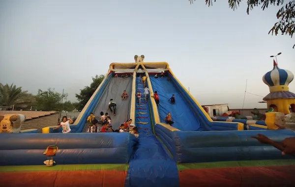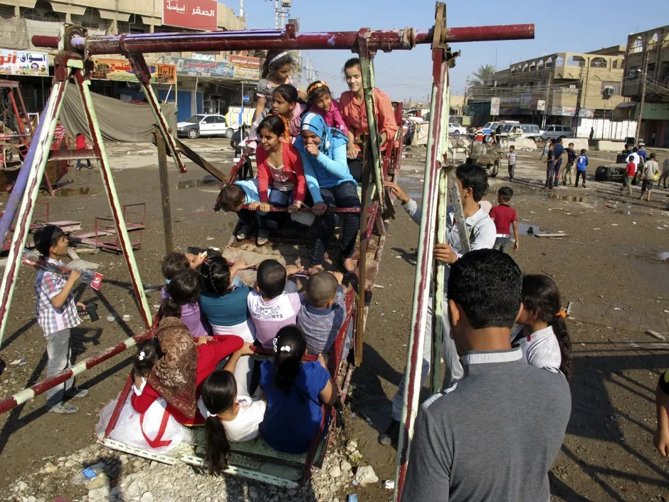 伊拉克儿童在巴格达的Shaab区的游乐园里荡秋千,庆祝古尔邦节。全世界的穆斯林通过屠宰羊、山羊、牛和骆驼来庆祝古尔邦节,以纪念先知亚伯拉罕在上帝的命令下愿意牺牲他的儿子伊斯梅尔。泰尔·阿尔-苏达尼/路透社巴格达的国家剧院正在蓬勃发展;未来一年将在这座城市拍摄24部电影。根据《电讯报》的报道,这座城市的知识分子已回到穆坦纳比街的二手书店。