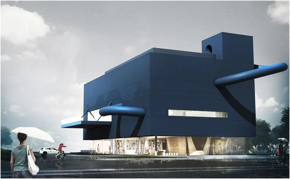 以下是UGO为一个混合用途图书馆结构构思的一些其他用途,例如滑板公园、杂货店、夜总会等等: