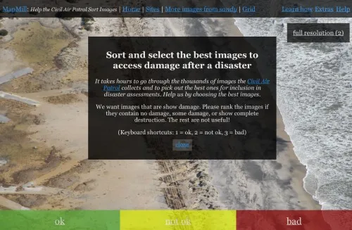 “这个 MapMill 修改允许任何人对灾后航拍照片中描绘的损害进行评分。这些地理定位的判断用于形成损害评估网格,以帮助专业应急响应者优先处理现场工作.”