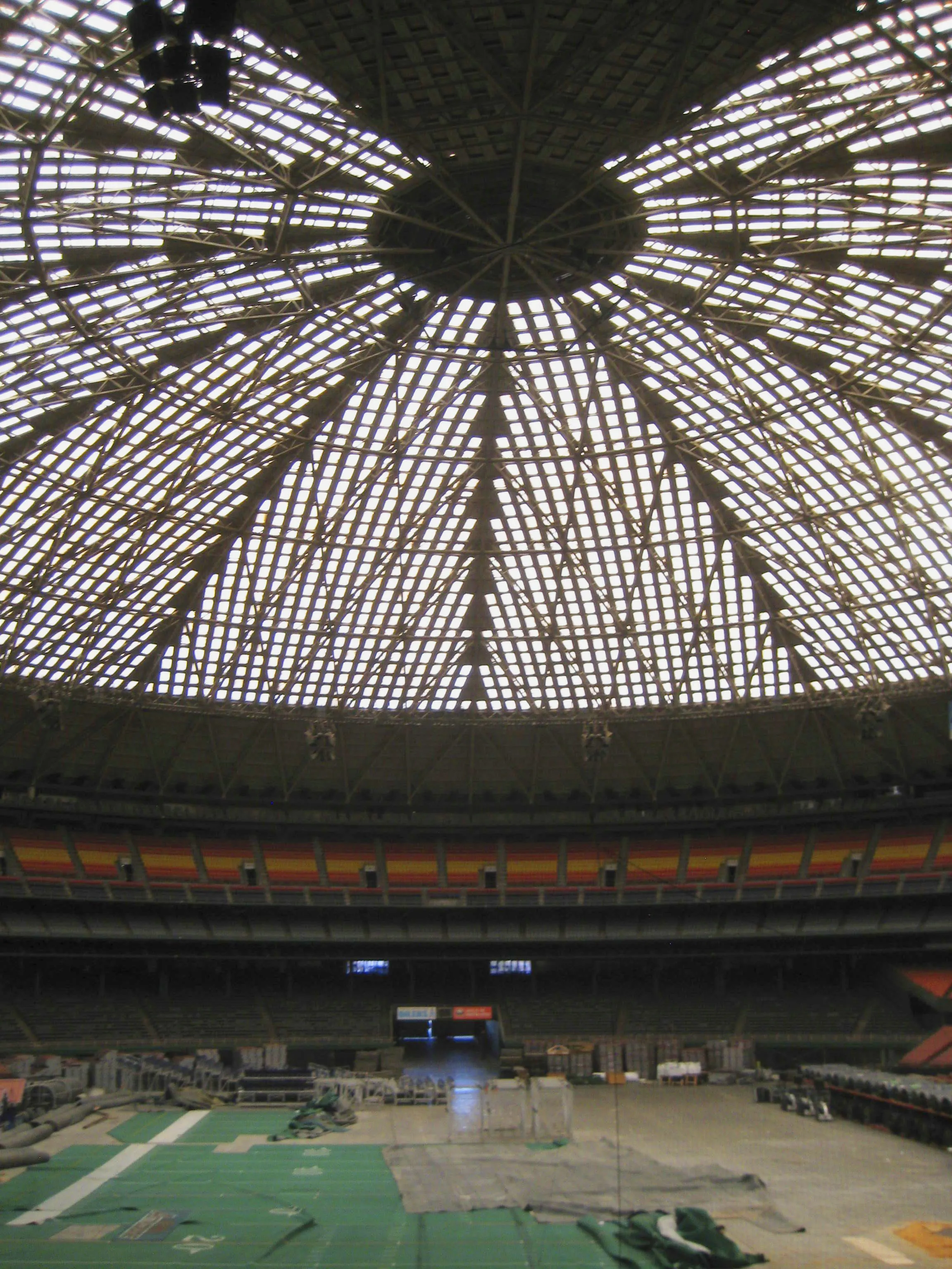 对于任何在现代主义建筑或职业体育世界中长大的人来说,进入穹顶是一种奇特的精神体验。自然光从天花板倾泻而下,照耀着这个日渐衰败的场地。撕裂的阿斯特罗草场仍然被90年代末的遗物所包围(方形电视、广告、为其最著名的租户——美国职业棒球大联盟的阿斯特罗斯队和前NFL的油人队而设的端区标志)。