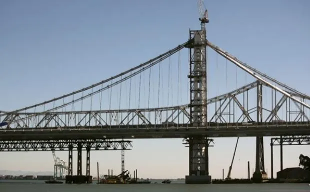 罗伯特·加尔布雷斯/路透社在正在建设中的旧金山-奥克兰海湾大桥的新跨段上,至少有30根杆子在被紧固后断裂,旧金山纪事报报道。这些钢杆自2008年以来一直在位,并在3月的头几周作为建设过程的一部分被紧固**。** 官员表示,96根被紧固的杆子中有三分之一断裂。