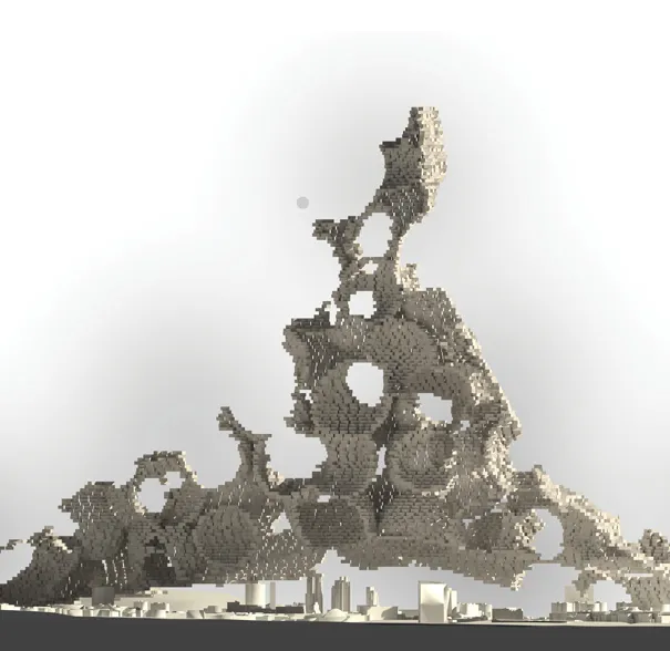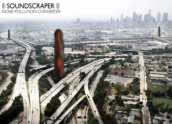 “声音摩天大楼”,由Julien Bourgeois、Olivier Colliez、Savinien de Pizzol、Cédric Dounval和Romain Grousellea设计,是一座将噪音污染转化为能源的显著塔楼: