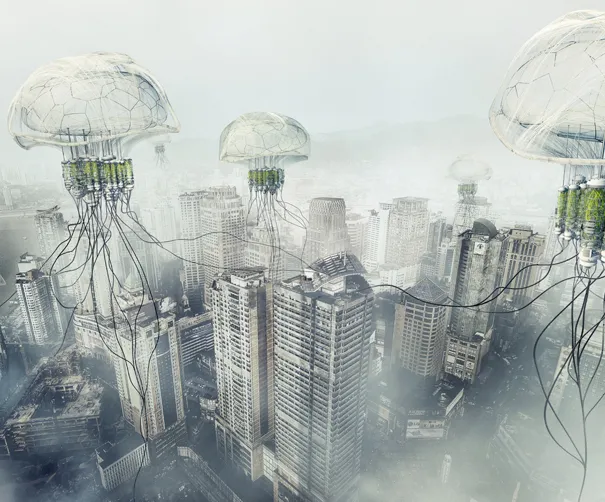“PH调节器”,由Hao Tian、Huang Haiyang和Shi Jianwei设计,是一组漂浮的机械水母形状的空气净化器: