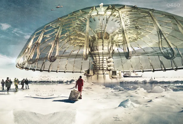 由一组建筑师评审选出的获胜者是德里克·皮罗齐的“极地伞”,这是一个研究实验室兼旅游景点,旨在重建极地冰盖。由渗透和太阳能电池板供电,每个伞可以遮蔽并帮助冻结超过一百万平方英尺的北极水域。有人想为地球买几千个这样的伞吗?