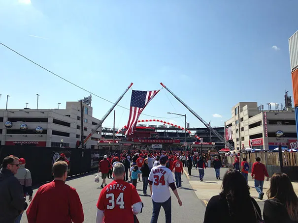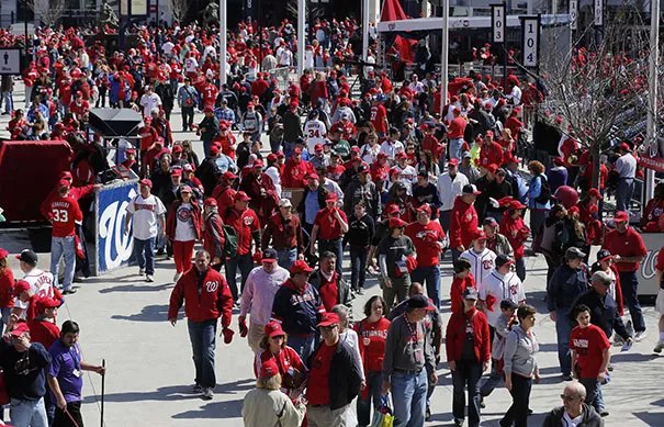 球迷们在2013年4月1日星期一前往国民公园观看赛季首场比赛,华盛顿国民队对阵佛罗里达马林鱼队。照片由杰伊·韦斯科特提供
