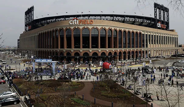 球迷在2013年4月1日星期一于纽约的西铁城球场到达,准备参加纽约大都会队与圣地亚哥教士队的开幕日棒球比赛。美联社照片/弗兰克·富兰克林二世