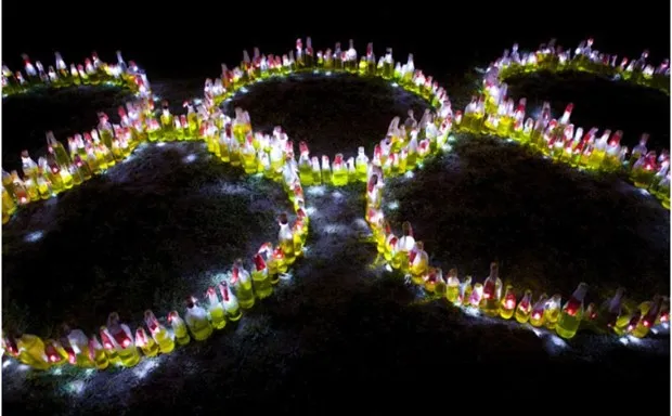 古斯塔沃·萨纳布里亚/光中断别担心,2020年夏季奥运会还有七年,仍然没有确定的城市。一些马德里的人已经想要它们 离开。他们在上个月的一个寒冷夜晚通过建造你看到的公共艺术作品明确表达了这一点 在这里,这个作品由发光的瓶子制成,旨在召唤 燃烧的莫洛托夫鸡尾酒的形象。