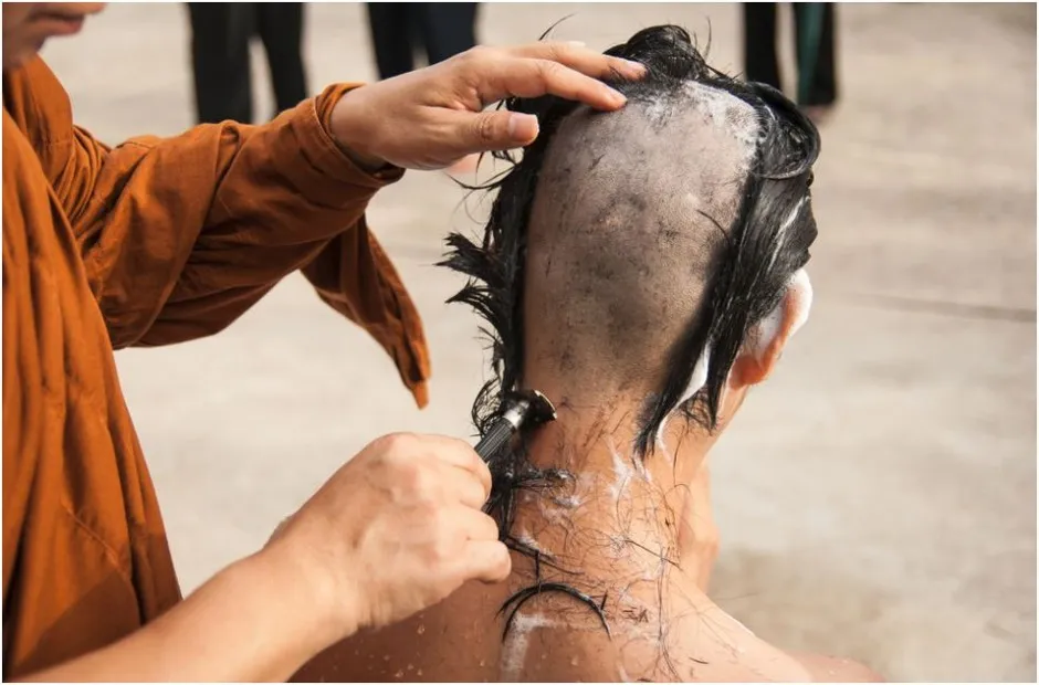 在那里,拘留者被排成一排,一名警察开始剃他们的头发。他从前到后、从一只耳朵到另一只耳朵剃了两条线,告诉年轻人他们可以在附近的理发店完成工作。