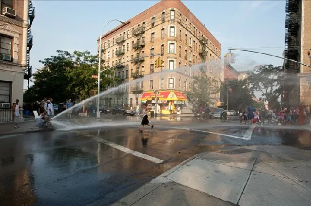 有时这些行为的回声超越了图像本身。一对照片捕捉到孩子们在班德拉的街道上打板球和在哈莱姆的破损消防栓旁奔跑。在这两个地方,索恩德说,警察来了,把孩子们赶出了这些区域——而在这两个地方,他们在警察离开后又回来了,继续玩耍。