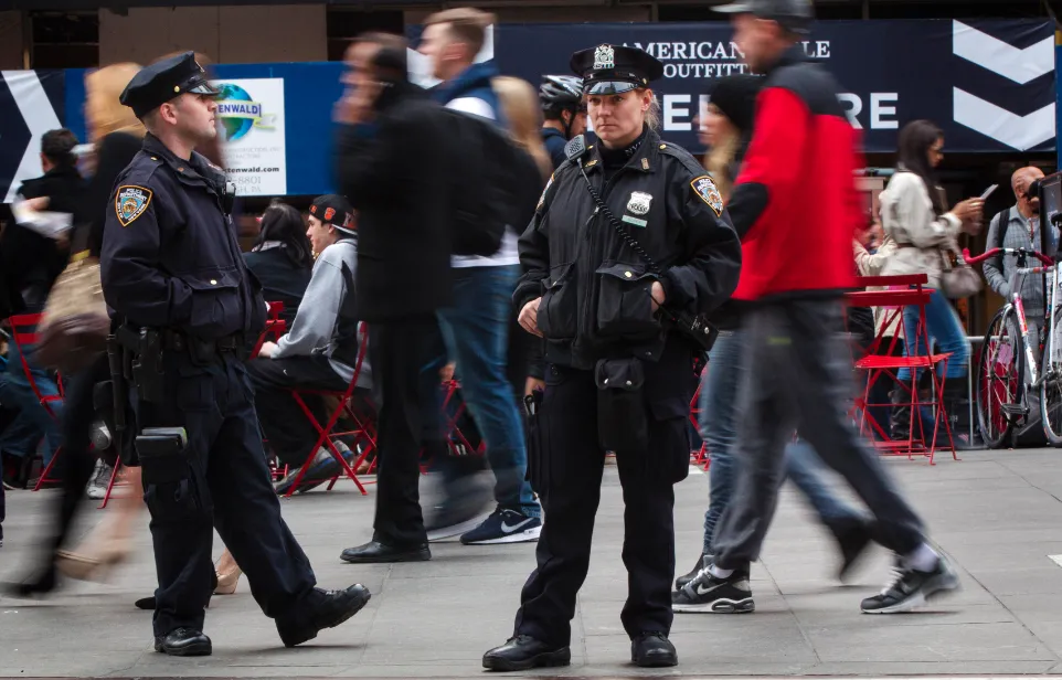 在纽约时代广场,警察在波士顿爆炸袭击后巡逻。卢卡斯·杰克逊/路透社