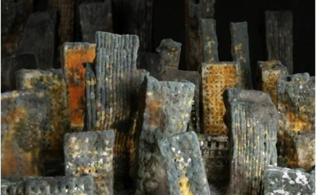 作为一名有未来愿望制作自己科幻电影的舞台设计师,马滕松想要看到这一衰退过程的实际情况。因此,这位位于斯德哥尔摩的艺术家收集了一些易腐烂的材料——在这种情况下,是面包片——并开始在她的工作室里建立一个可食用的城市。然后,她每天拍摄一次,持续六个月,捕捉生命之源的腐烂,变成一个弯曲、奇异色彩的腐烂团块。