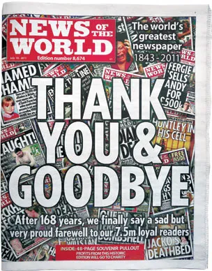 2011年7月,英国最受欢迎报纸的最后一期阿尔法