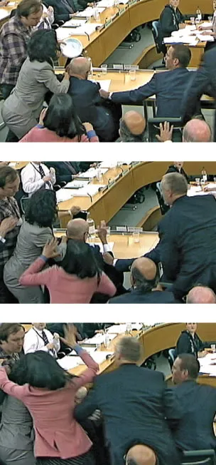 但不知为何,那个扔派的男人失手了。穆尔多克的支持者迅速团结起来。早上的持久画面,反复在有线新闻中播放的,不是鲁珀特脸上沾满剃须泡沫的样子,而是穆尔多克的妻子温迪·邓跳起来用重拳捍卫她丈夫的场景。