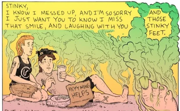 抱歉,艺术家们为了笔而拼搏:这已经有人做过了,这本选集,现在是詹姆斯·斯坦顿令人沮丧但又以某种方式搞笑的项目,"错过的连接漫画。“斯坦顿是一位28岁的西雅图漫画家,他在多个大都市地区的Craigslist个人广告中寻找引人注目的帖子标题。“很多广告看起来并不那么有趣,”他说,“然后我会看到一个,感觉像是,哦,是的,这肯定会很奇怪。没有办法避免。”在错过的连接的奇异宇宙中,“奇怪”是相对的:斯坦顿描绘了从一个渴望她臭脚伴侣的朋克女孩,到一个绝望的灵魂拼命点击收件箱寻找回复,再到一个寻找他曾在蜜蜂袭击时庇护的美丽女性的男人。