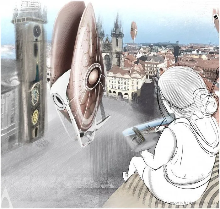 至于飞艇不寻常的贝壳形状,Gojiya希望它能反映布拉格建筑的波西米亚之美。想要查看更多“第三维度”的插图 请点击这里 和 请点击这里;以下是艺术家在 A’ 设计大赛 中获奖作品的样本。