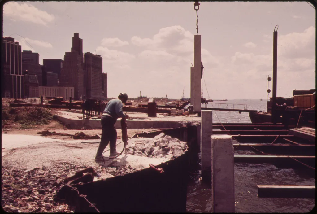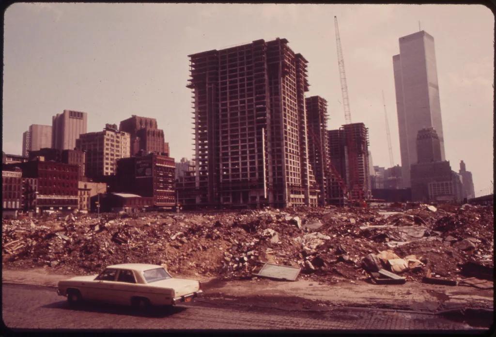 "哈德逊河对面的世贸大厦旁,电池公园开发项目开始建设 05/1973