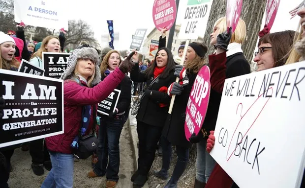 顶部图片:反堕胎游行者在1月25日华盛顿的年度生命大游行中与支持堕胎权的活动人士争论。(乔纳森·恩斯特/路透社)