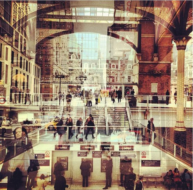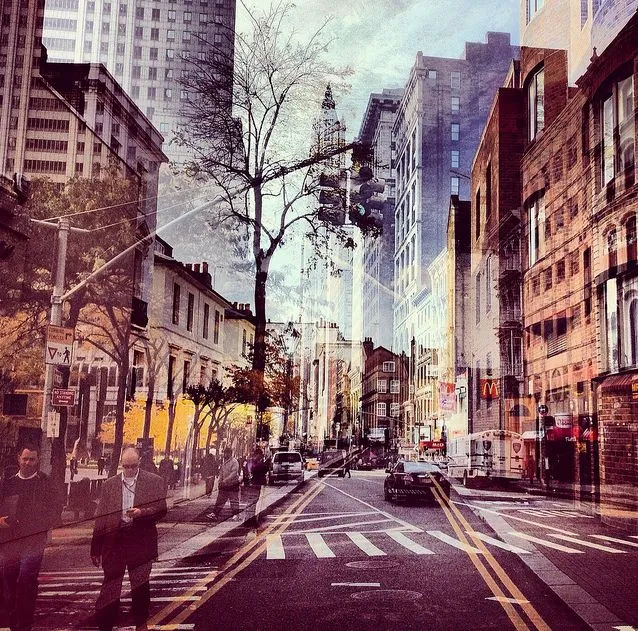 这个“它”证明是一系列混合图像,Zalcman称之为 “纽约 + 伦敦。” Zalcman在这两个城市用她的iPhone 4S拍摄了原始照片,然后使用编辑应用将它们混合成双重曝光。这些混合结果有时是幻想的,有时是令人毛骨悚然的,但总是引人入胜。
