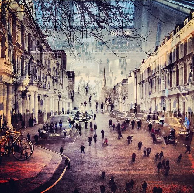 这个“它”证明是一系列混合图像,Zalcman称之为 “纽约 + 伦敦。” Zalcman在这两个城市用她的iPhone 4S拍摄了原始照片,然后使用编辑应用将它们混合成双重曝光。这些混合结果有时是幻想的,有时是令人毛骨悚然的,但总是引人入胜。