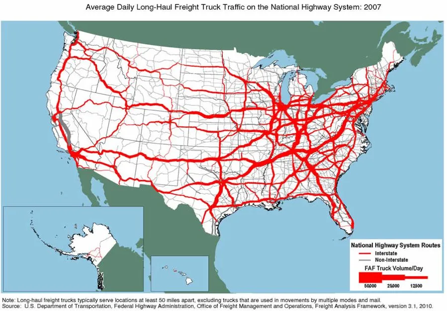 朱利亚诺将这些问题归纳为三个类别。第一个是她所称的“城市核心”问题:本质上是在城市中心,当卡车在交付的第一和最后一公里没有得到良好管理时,发生的拥堵和双重停车。第二个是通过城市地区运输货物的环境影响。第三个是枢纽困境——在洛杉矶(港口运输)或芝加哥(铁路货运)等国际节点上积累的额外商业交通。