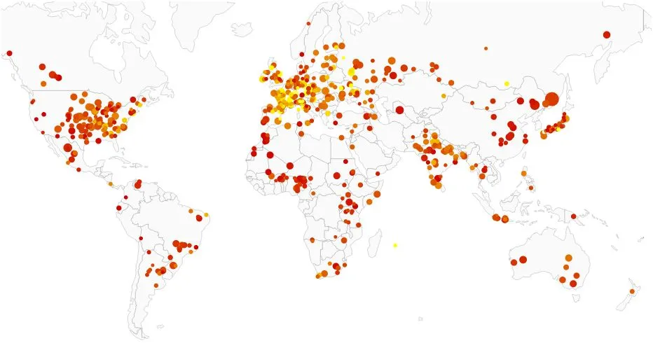 一幅关于500年来陨石撞击地球的奇妙地图 - 彭博社