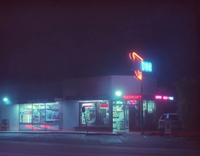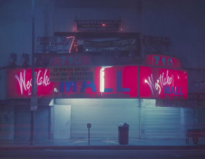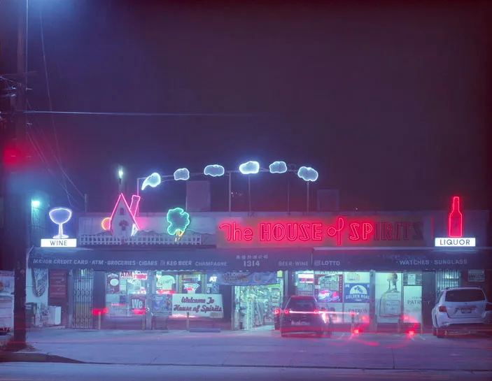 从那些夜间探险中诞生了“过期的洛杉矶,”穆恩最新的摄影项目。她使用严格过期的胶卷为她的4x5相机(没有使用Photoshop),收集了展示城市不那么光鲜一面的旧商店和霓虹灯标志的图像。