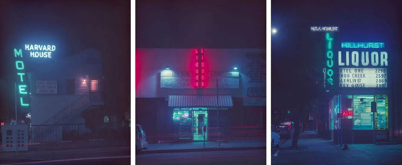 从那些夜间探险中诞生了“过期的洛杉矶,”穆恩最新的摄影项目。她使用严格过期的胶卷为她的4x5相机(没有使用Photoshop),收集了展示城市不那么光鲜一面的旧商店和霓虹灯标志的图像。