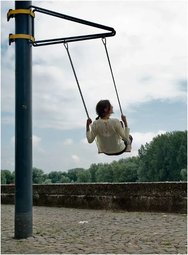 看不到那边潺潺流淌的风景河流?把这个木座秋千挂在路灯上,摇动自己到一个好的观景点: