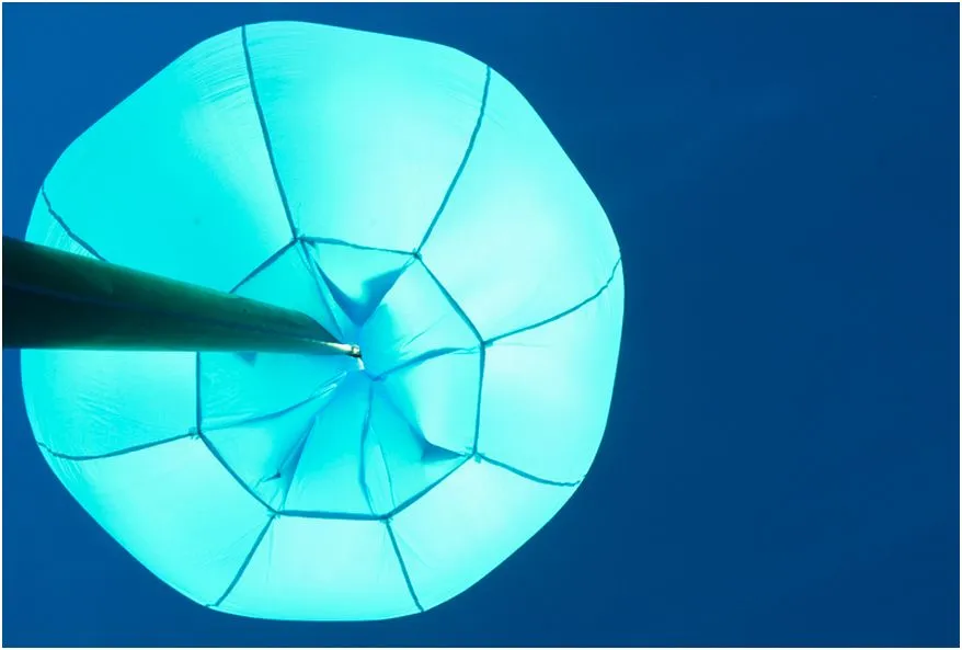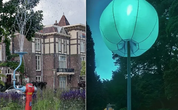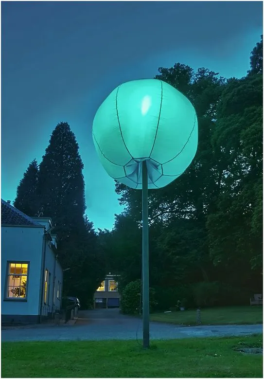 这个奇怪的、鼓起的 街头艺术 是一个改造过的灯。设计师添加了青绿色的气球灯罩,将其转变为一个照亮该地区的地方地标,以“非常有氛围的方式”: